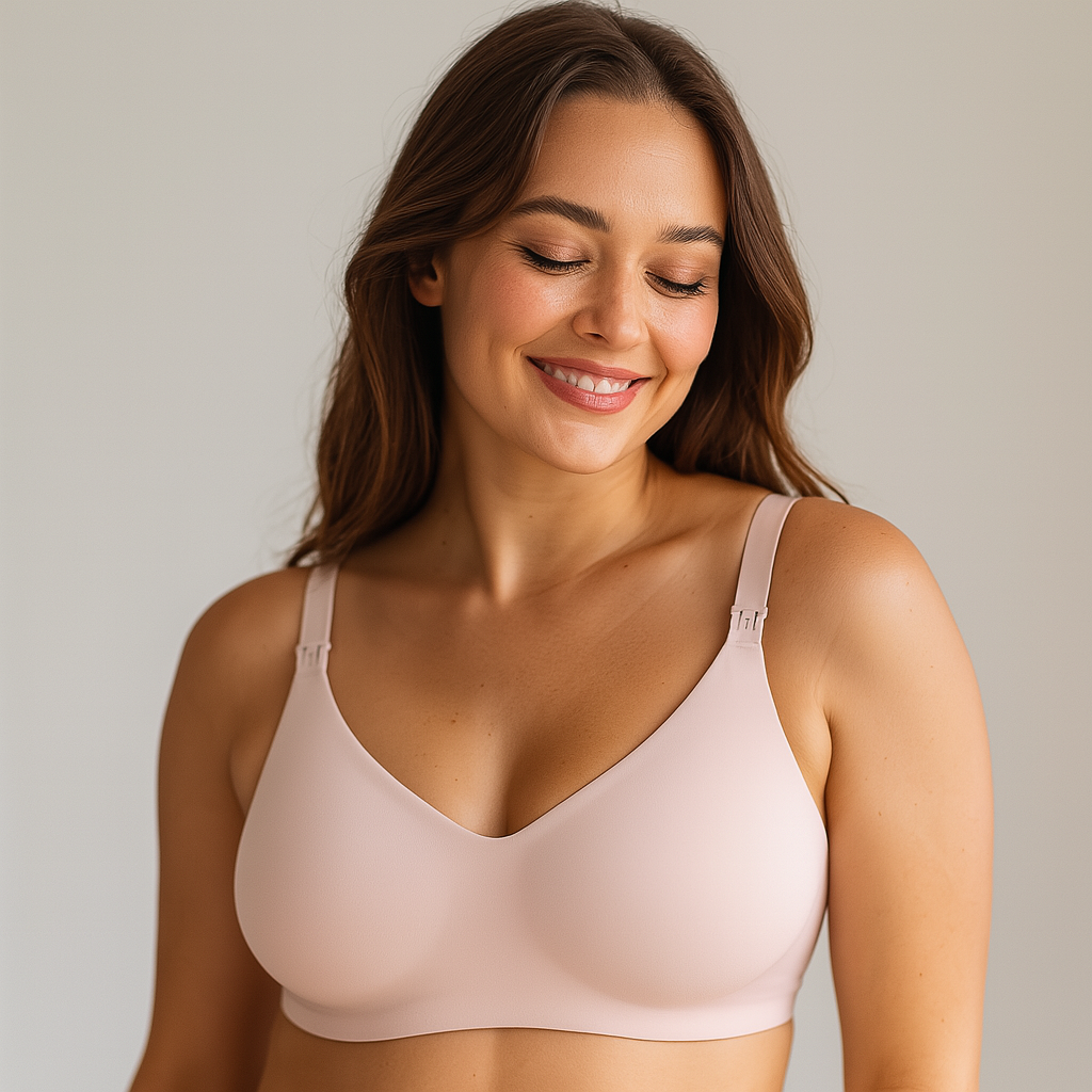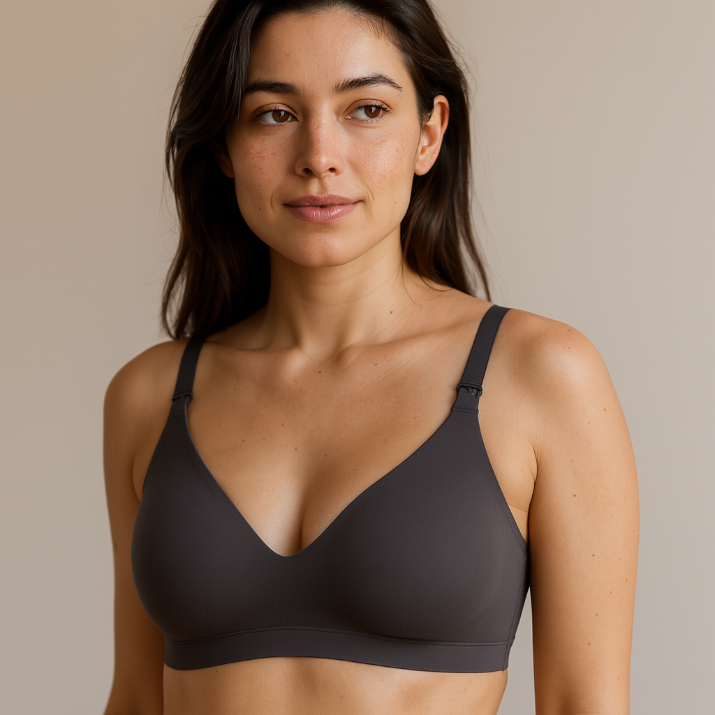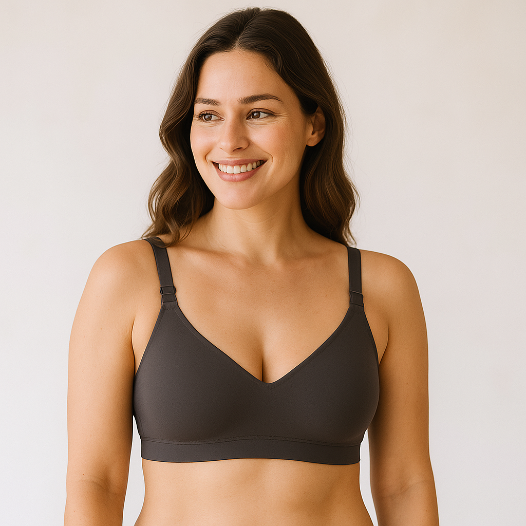 Der Mama-BH ist nahtlos, bügellos und sitzt wie eine zweite Haut. Kein Abzeichnen, kein Verrutschen – egal was du trägst.