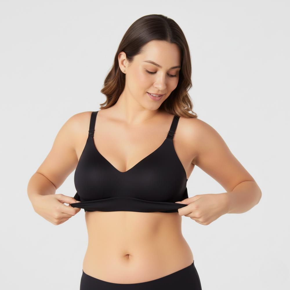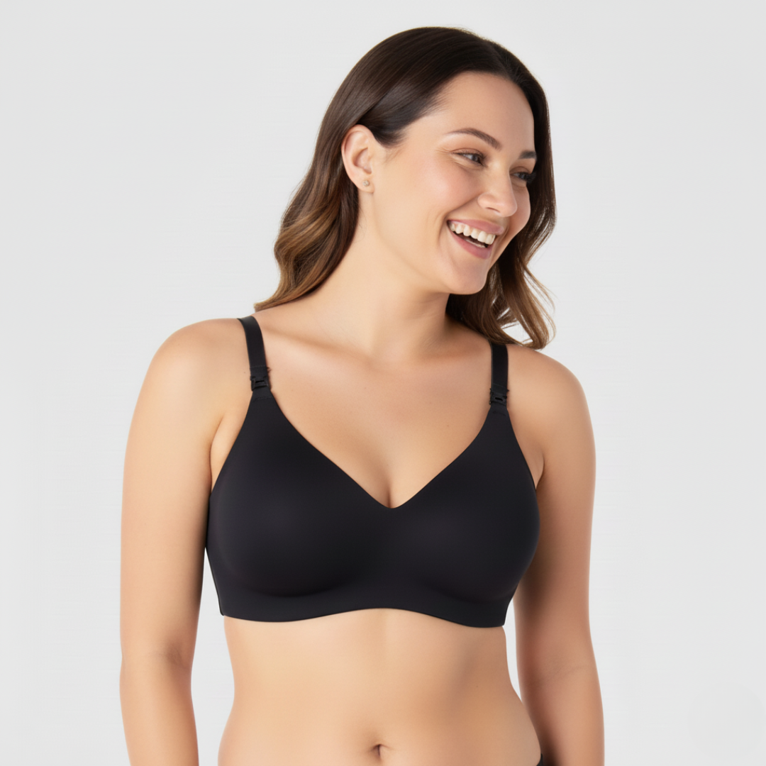 Der Mama-BH ist nahtlos, bügellos und sitzt wie eine zweite Haut. Kein Abzeichnen, kein Verrutschen – egal was du trägst.